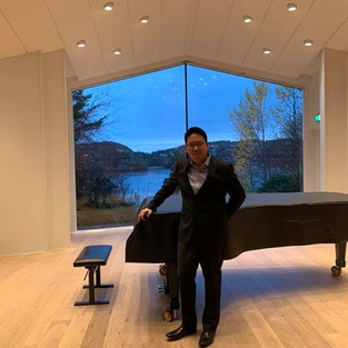 Bergen is the most placid place I ever visited in my travels. The 1st photo is the view outside Grieg's backyard at his home, Troldhaugen and the one below shows his living room with his piano. This serenity definitely inspired Grieg's music to be so open sounded and tranquil. Bergen rains almost 300 days in a year because it is situated in the west coast line of Norway. The city is beautiful yet displays a certain melancholy in the mood and vibe of the city. This melancholy sound world, is presented with the extreme despair when Grieg lost his parents and therefore writing his masterpiece for piano, Ballade in G minor Op. 24, which I performed at Troldhaugen in the 3rd photo. I played it also for Leif Ove Andsnes, whose recording inspired and draw me towards the work. His guidance to me was to always feel the pulse inside my body and take enough time to explain all the notes and the phrases.